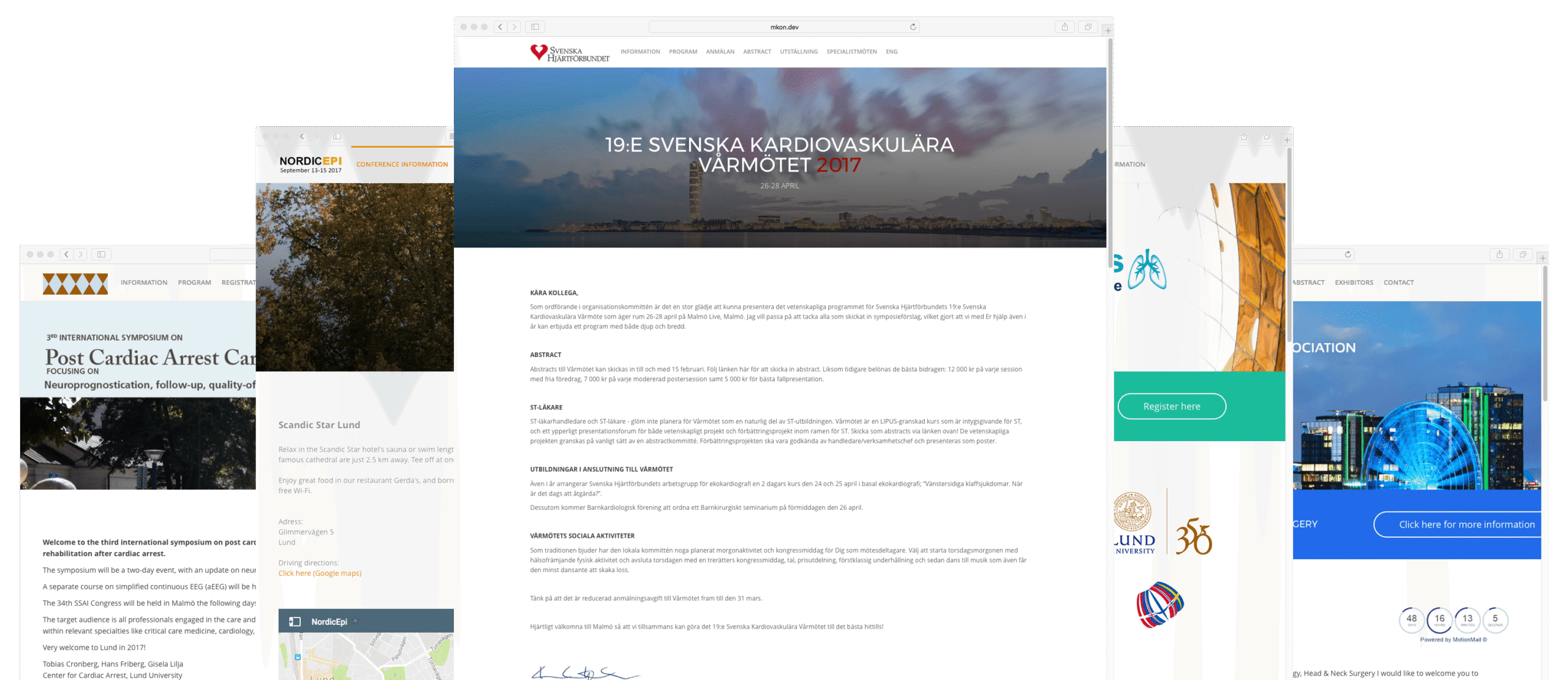 En grundläggande funktion i lösningen är möjligheten att skapa unika webbplatser för varje kongress. Systemet fungerar som ett modernt CMS (Content Management System) för utformning av dessa webbplatser som snabbt sjösätts utan behov av installation av nya servrar eller andra komponenter. (Som exempel kan nämnas att MKON upprättade ett trettiotal webbplatser under de två första månaderna efter driftsättning.)