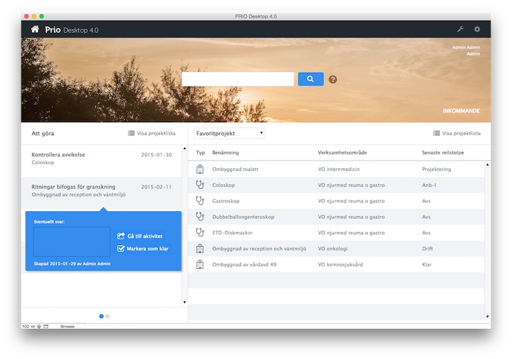 "Med PRIO har vi fått kontroll över hela verksamheten och detaljerad information om alla projekt att använda som stöd för projektledning. Vi får en bättre överblick av bland annat planering, resurser och ekonomin. Dessutom är PRIO ett enkelt system där "alla" har omedelbar tillgång till identisk info för både utrustnings- och bygginvesteringar"
